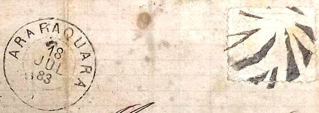 At the end of the Empire there also came the French type ASP-0050c (Image: Luis C. Fritzen): above one reads ARARAQUARA, below is the typical star between brackets. The only specimen so far bears a date from 1889 in the centre.