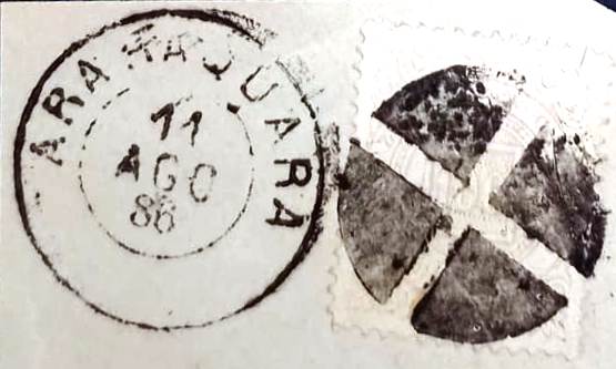 Five mute cancellations from the imperial Araraquara have appeared so far. Two of these have been registered by P. Ayres as Nos. 26 and 61a. These were adopted in Mute Cancellations of the Brazil Empire / Carimbos Mudos do Brasil Império (Brazil Philatelic Association, Rio de Janeiro, 2000) by J. Dingler and Klerman W. Lopes under nos. 336 and 442 respectively: