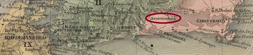 Die Freguesia von S. Sebastião de Araruama entstand im Januar 1799, gehörte der Vila von Cabo Frio und lag am Nordufer des Araruama-Sees, 120 km östlich der Hauptstadt Rio de Janeiro. Der Name kam aus der Tupi-Guarani-Sprache und bedeutet Land der vielen Aras. Die Ortschaft wurde im Februar 1859 eine Vila und ist eine Stadt seit Januar 1890.
