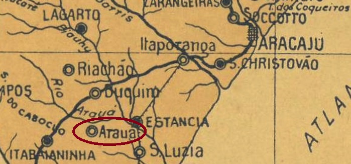The freguesia of N. Sra. da Conceição da Parida was established in June 1864 in the Município of Estancia and was located on the south bank of the Arauá River, 100 km southwest of the provincial capital of Aracaju. The place name was changed to Arauá in April 1868. Arauá has been a vila since April 1870, and a town since December 1938. According to the most convincing translation of the Tupi word so far would be Arauá a variant to Aruá, a mollusc of the Ampullaridae family: