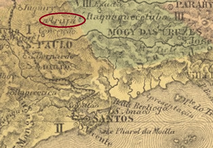 The Freguesia of Senhor Bom Jesus de Arujá originated in June 1852 in the Vila of Mogy das Cruzes and was located 40 km northeast of the provincial capital of São Paulo. The village only became a district of Santa Isabel in November 1938 and has been an independent município since February 1959. The name clearly has its origins in the Tupi language, but its meaning is not clear: according to some sources it means owner of the sky. Others say it means home of the frogs…