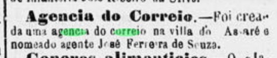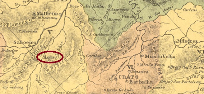 The Freguesia of N. Sra. das Dores de Assaré was founded in December 1850 at the Vila of Saboeiro, 480 km south of the provincial capital Fortaleza. In July 1865, the place was declared a vila in its own município.