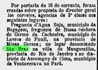 Das örtliche Postamt wurde im Februar 1882 ins Leben gerufen, wie die Presse aus Rio schreibt: