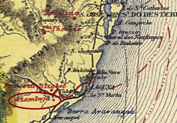 The Italian colony called S. Marcos de Azambuja was established in April 1877 in the Município of Tubarão, located barely 180 km south of the provincial capital of Desterro (today: Florianópolis). In January 1900, it became a district, which has belonged to the newly established Município of Pedras Grandes since December 1961.
