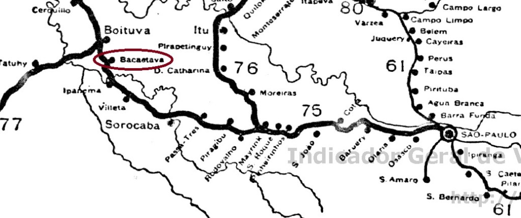 Der Bahnhof Bacaetava wurde im August 1880 durch die E.F. Sorocabana-Bahngesellschaft, Hauptlinie, eingeweiht und lag im Município von Porto Feliz, 130 km westich der Provinzhauptstadt São Paulo entfernt. Die Bahnlinie wechselte 1892 zur Cia. União Sorocabana e Ytuana und von 1905 bis 1928 gehörte sie der E.F. Sorocabana e Ytuana. Dann wurde der Bahnhof deaktiviert, da die neue Gesellschaft Sorocabana eine neue Bahntrasse baute, die den Bahnhof verlegt hat.