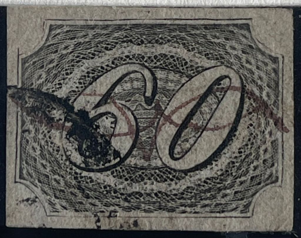 Und inzwischen tauchte diese Entwertung sogar auf einer Markenausgabe aus 1844 auf, aber in Verbindung mit einem nicht identifizierbaren Stempel.