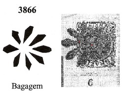 Aus Mute Cancellations of the Brazil Empire/ Carimbos Mudos do Brasil Império (Brazil Philatelic Association, Rio de Janeiro, 2000) von James Dingler und Klerman W. Lopes kommen zwei stumme Entwertungen aus Bagagem, mit Nr. 1793 und 3866: