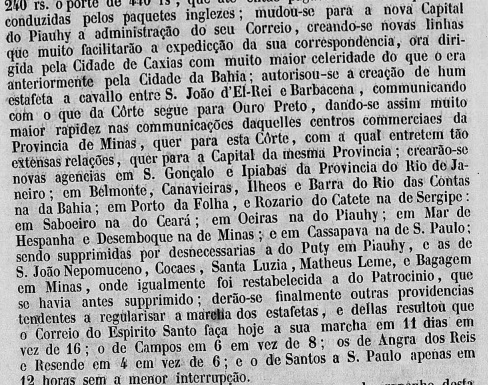 Finally, a fourth post opening was arranged in October 1860, as noted in the postal report (Relatorio Postal) for 1887.
