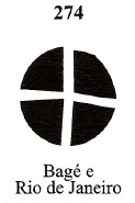 BRS-0020h (Samml. FM) ist wieder ein Doppelkreis mit der Inschrift BAGÉ oben, aber im Vergleich zu BRS-0020e sind hier die Buchstaben kleiner, und unten ist kein Ornament zu sehen. Daten in der Mitte von 1889 bis 1891. Und BRS-0020i (Abb. aus dem Internet) dürfte bereits republikanisch sein, da seine inneren Daten bisher zwischen 1891 und 1894 liegen. In diesem Doppelkreis liest man unten (S. PEDRO DO SUL).