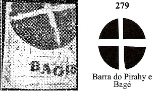 Four mute postmarks from Imperial Bagé were listed in Mute Cancellations of the Brazil Empire / Carimbos Mudos do Brasil Império (Brazil Philatelic Association, Rio de Janeiro, 2000) by James Dingler and Klerman W. Lopes: