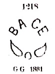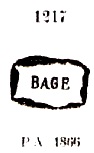 Then came the French type BRS-0020d (Fig. Fuad Ferreira Fo.): a double circle with the inscription BAGÉ above and the star between brackets below. A specimen found on a letter from 1879.From about 1881 also came the enigmatic BRS-0020e, also known through Ayres (op. cit.), this time under no. 1218: