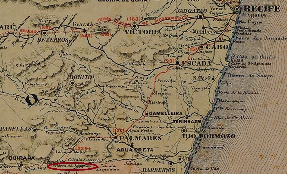 Der Bahnhof Barra de Jangada (auch mal “das Jangadas” geschrieben) wurde im Juni 1884 auf der Südlinie der Bahngesellschaft E.F. Recife ao S. Francisco eingeweiht und lag nah am Südufer des Flusses Piranji im Município von Quipapá, 160 km südwestlich der Provinzhauptstadt Recife entfernt. Die Bahnlinie ging 1901 zur Great Western-Bahngesellschaft und 1950 zur Rede Ferroviária do Nordeste über. Von 1975 bis zur Stilllegung 1996 gehörte sie der Rede Ferroviária Federal S.A. (estacoesferroviarias.com.br). Das Bahnhofsgebäude wurde vor kurzem restauriert.