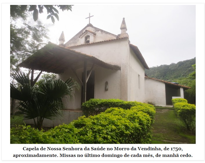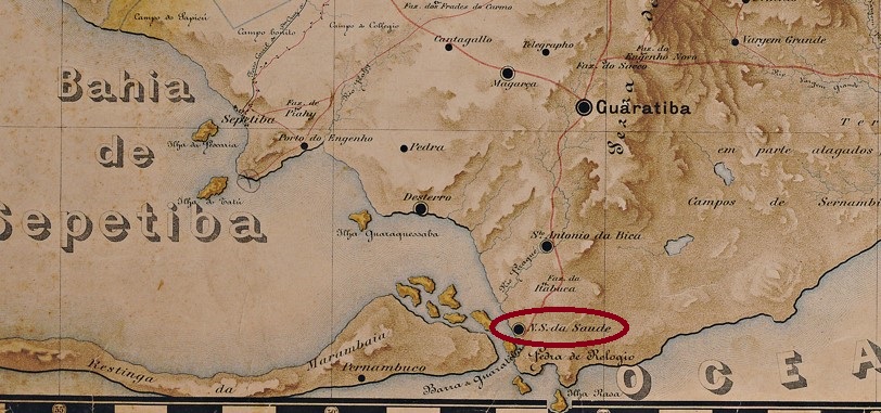 Around 1750, the chapel of N. Sra. da Saúde da Barra de Guaratiba was built, which still stands between Sepetiba Bay and the Atlantic Ocean, 50 km west of the capital Rio de Janeiro.