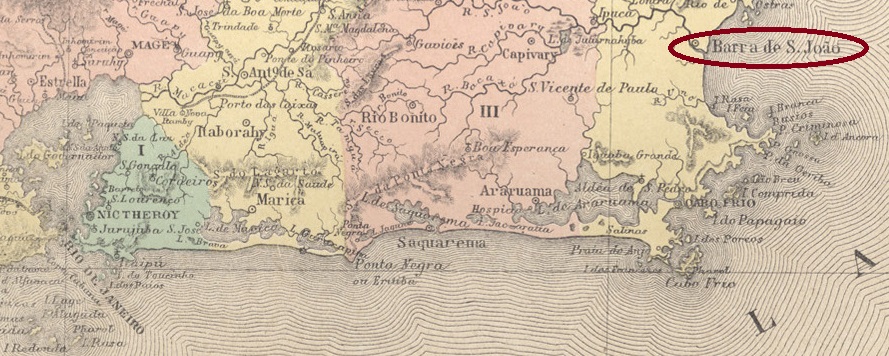 The freguesia of Barra de S. João was founded in 1800 and was located close to the north bank of the São João River in the territory of the Vila of Macaé, 130 km northeast of the capital Rio de Janeiro. In May 1846 it became a vila and in February 1890 a town, which has since changed its name three times: in December 1901 to Indayassú, in September 1904 back to Barra de S. João and in March 1938 to Casimiro de Abreu, which is still current today. The name is to commemorate the poet (1839-1860) who died young and was born in the region.