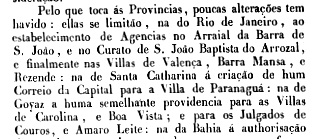 The local post office is dated March 1835, as Nova Monteiro writes in Administrações e Agencias Postaes do Brasil Imperio (Brasil Filatelico/RJ, 1934-5; reprint SPP 1994-1999). However, a local postal agency had already been mentioned a year earlier in the Imperial Ministry’s report: