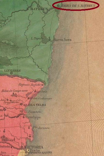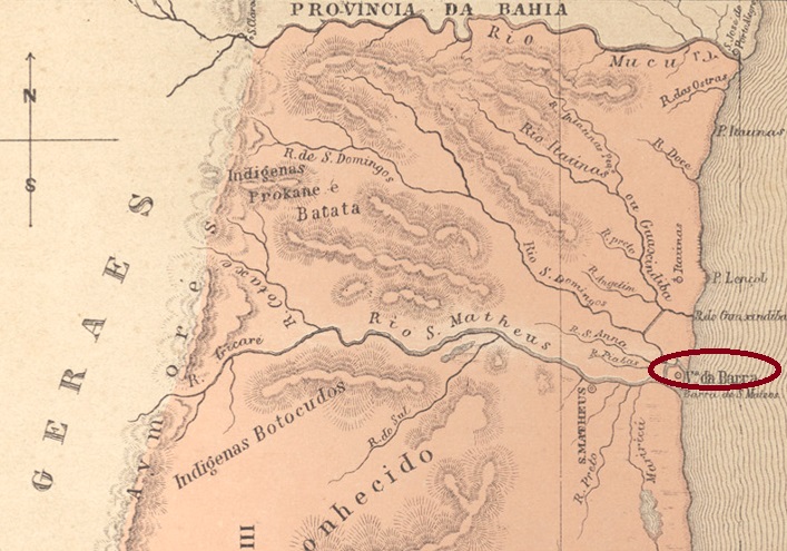 The parish of N. Sra. da Conceição da Barra de S. Matheus was founded in August 1831 and was situated on the north bank of the mouth of the river S. Mateus in the area of the vila of the same name, 250 km north of the provincial capital Vitória. It became a vila in April 1833 and has been the town of Conceição da Barra since September 1891.