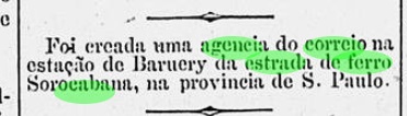 Ein Bahnhofspost am gab es seit Juni 1887, wie die Presse aus Rio berichtete: