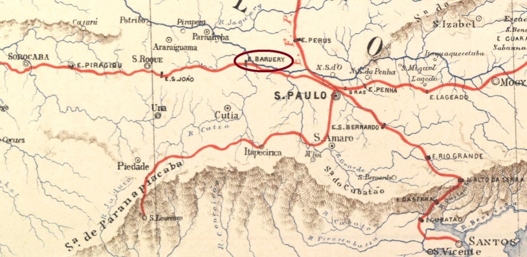 The imperial postmark is BSP-0125a (image from the internet): a double circle with the inscription BARUERY at the top. The only specimen seen so far is red and was used on a D. Pedro issue of 1876.