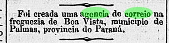 Das örtliche Postamt wurde im Oktober 1887 ins Leben gerufen, wie aus der Rio-Presse zu entnehmen ist: