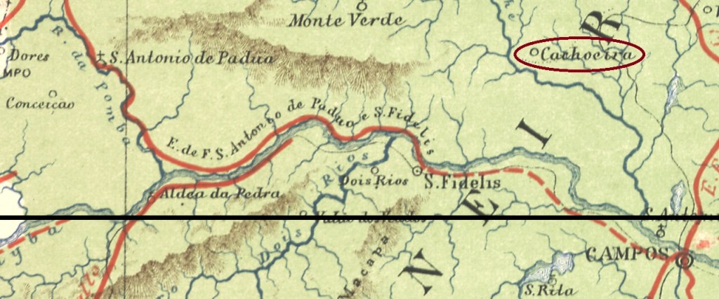 Cachoeiro station (also spelled Cachoeira) was opened in November 1878 by the E.F. de Carangola company on the north bank of the Muriaé in the Vila de Campos area, 310 km northeast of the capital Rio de Janeiro. In 1890, the railway line changed hands twice: to E.F. Barão de Araruama and then to E.F. Leopoldina. In 1894, the station was renamed Cardoso Moreira, in memory of the Portuguese Jozé Cardoso Moreira (1815-1889), large landowner and entrepreneur of the region: