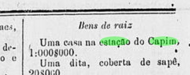 Kopfzerbrechen bereitet das Postamt an diesem Bahnhof. Sowohl R. Koester (Carimbologia VIII) als auch Paula Sobrinho (História Postal de Minas Gerais, Belo Horizonte, 1997) schreiben, dass es dort seit Juli 1881 eine Postagentur gab, zwei Jahre vor der Inbetriebnahme des Bahnhofs. Auch im Verzeichnis der kaiserlichen Postämter (Tabella das Agencias do Correio do Imperio, Rio de Janeiro, 1885) wird ein Bahnhofspostamt Capim erwähnt – leider ohne Jahresangabe für dessen Entstehung-, im Postbericht (Relatorio Postal) Ende 1886 jedoch nicht mehr, obwohl der Begriff Estação do Capim bereits im März 1881 in der regionalen Presse zu lesen war: