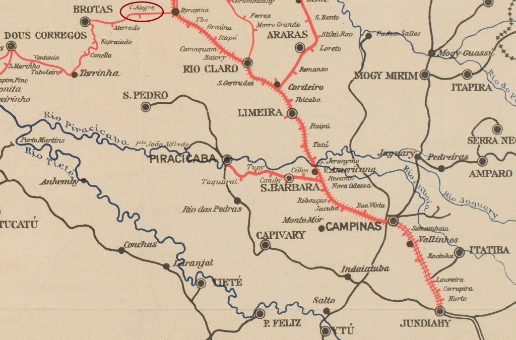 Der Bahnhof Campo Alegre wurde im Juli 1885 von der Eisenbahngesellschaft E.F. Rio Clarense (Abzweig Jaú) eröffnet und lag im Município Brotas, 230 km nordwestlich der Provinzhauptstadt São Paulo. Die Strecke ging 1888 an die Rio Claro Railway, 1892 an die Cia. Paulista de Estradas de Ferro und gehörte von 1971 bis zu ihrer Stilllegung 1998 der FEPASA. Heute sind die Gleise noch vorhanden, das Bahnhofsgebäude ist eine Ruine (estacoesferroviarias.com.br).