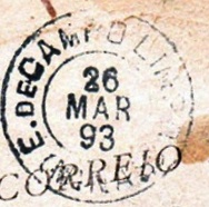 A railway station postmark is also known from the 19th century: CMG-0516a (Fig. Luiz C. Fritzen) has internal dates of 1892 and 1893.