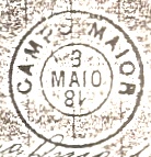Three dates have been found for the opening of post offices. First in September 1817, as Nova Monteiro writes in Administrações e Agencias Postaes do Brasil Imperio (Brasil Filatelico/RJ, 1934-5; Reprint SPP 1994-1999), making Campo Maior one of the oldest post offices in the later province. Then 1823, as can be read in Koester’s Carimbologia VIII. And finally 1876, as stated in the Directory of Imperial Post Offices (Tabella das Agencias do Correio do Imperio, Rio de Janeiro, 1885). When the agency closed in the meantime is not known, only that it was in operation in 1839, 1847, 1856 and 1864.