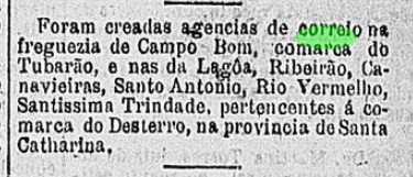 Ein Postamt gab es dort seit März 1884, wie die Presse in Rio berichtete: