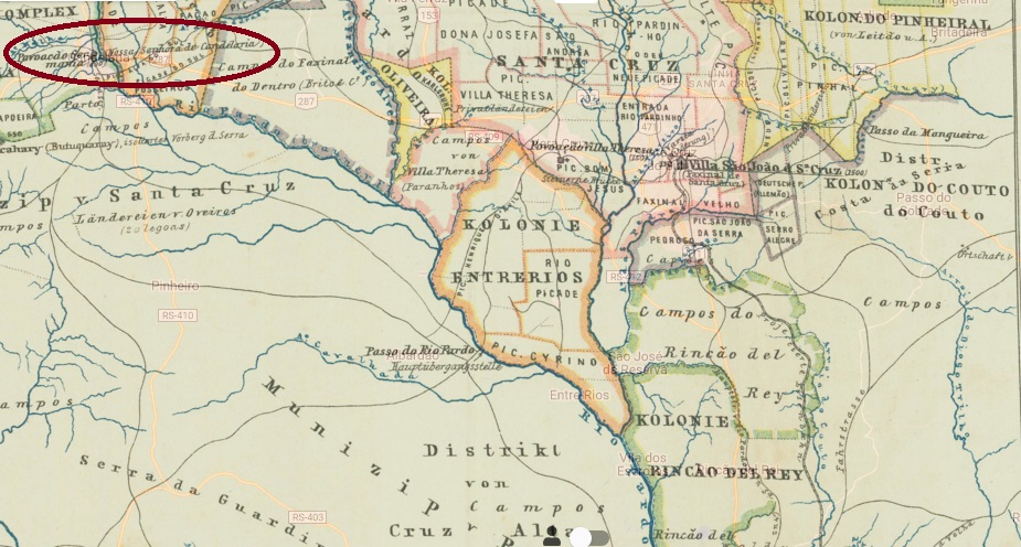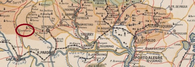 The Freguesia de N. Sra. da Candelaria da Germânia was founded in May 1876 around the Vila Rio Pardo and is located on the west bank of the Rio Pardo, 190 km west of the provincial capital Porto Alegre. In January 1898, the town was elevated to the status of a district and has been an independent município since July 1925.