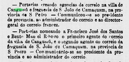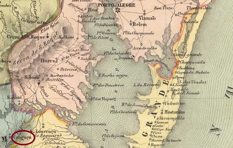 The Freguesia de N. Sra. da Conceição de Cangussu (formerly also Cangossu, today spelled Canguçu) was founded as early as January 1812 and was located on the east bank of the Arroio Saraiva River, 280 km southwest of the later provincial capital Porto Alegre. In January 1857, it was elevated to a villa as an independent municipality.