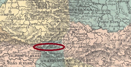 Sowohl Paula Sobrinho (História Postal de Minas Gerais, Belo Horizonte, 1997) als auch Reinhold Koester (Carimbologia IX) sind sich einig, dass es dort seit Dezember 1877 ein Postamt gab, auch wenn es im Kaiserlichen Postführer (Guia Postal do Imperio, Rio de Janeiro, 1880) nicht erwähnt wird. Jedenfalls ist der bisher einzige kaiserliche Poststempel CMG-0545a, der zwischen 1885 und 1893 auch in blau vorkommt und bereits von P. Ayres in Catálogo de Carimbos Brasil-Império (S. Paulo, 1937, 1942) gezeigt wurde: