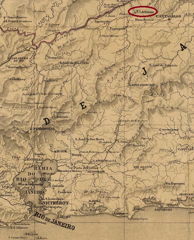 Curato de N. Sra. do Monte do Carmo was founded in January 1843 within the Vila de Cantagalo and was located on the east bank of the Paquequer, 200 kilometres north of the capital Rio de Janeiro. It became a freguesia in April 1846, a vila in October 1881 and a town in December 1889.