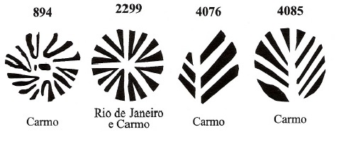 Four mute cancellations from Carmo were registered by James Dingler and Klerman W. Lopes in Mute Cancellations of the Brazil Empire / Carimbos Mudos do Brasil Império (Brazil Philatelic Association, Rio de Janeiro, 2000):