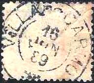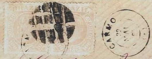 Der erste Stempel ist wahrscheinlich CRJ-0310a, den es auch in blau und rot von 1853 bis mindestens 1866 gab und der von Paulo Ayres im Catálogo de Carimbos Brasil-Império (S. Paulo, 1937, 1942) unter der Nr. 1265 registriert wurde: