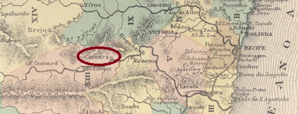The Freguesia de N. Sra. da Conceição de Caruaru (also spelt Caruru) was founded in 1844, belonged to the Vila de Bonito and was located on the north bank of the Ipojuca, 130 kilometres west of the provincial capital Recife. It became a Vila in August 1848 and a town in May 1878.
