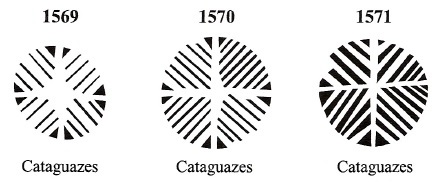 Aus Cataguazes sind auch viele stumme Stempel aus der Kaiserzeit bekannt. Hier sind die von James Dingler und Klerman W. Lopes in Mute Cancellations of the Brazil Empire / Carimbos Mudos do Brasil Império (Brazil Philatelic Association, Rio de Janeiro, 2000) vorgestellten Beispiele: