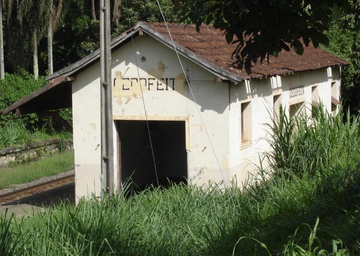 Cedofeita station was opened in December 1875 by the railway company E.F. D. Pedro II (Central Line) in the Município de Juiz de Fora on the east bank of the Paraibuna, 240 km south of the provincial capital Ouro Preto. The line was transferred to E.F. Central do Brasil in 1889 and belonged to Rede Ferroviaria Federal S.A. (estacoesferroviarias.com.br) from 1975 until the line was closed in 1996. From September 1923, the station belonged to the Município de Matias Barbosa. Today the station building is an abandoned ruin, but the tracks are still there.