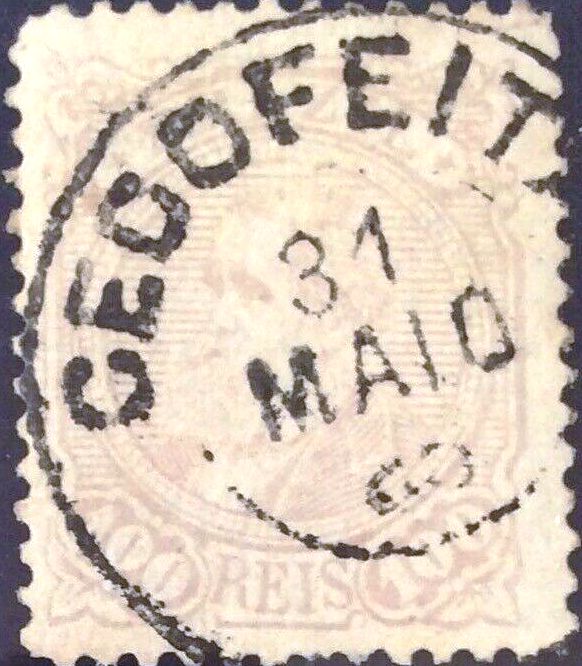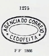 Two dates of origin have been found for the station post office. Firstly in January 1876, as Paulo Novaes writes (agenciaspostais.com.br). Then in September 1878, as stated by Paula Sobrinho (História Postal de Minas Gerais, Belo Horizonte, 1997) and R. Koester (Carimbologia XI). Koester, however, shows a handwritten cancellation from Cedofeita dated May 1876, which on the one hand contradicts his own information and on the other hand is a hint that the postmark did not arrive at the station in time: