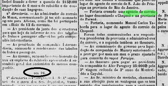 Die historischen Wirren spiegeln sich im Postwesen wider. Für das örtliche Postamt wurden bisher drei Gründungsdaten, aber keine Poststempel gefunden. Zuerst im Juni 1862, wie Nova Monteiro in Administrações e Agencias Postaes do Brasil Imperio (Brasil Filatelico/RJ, 1934-5; Nachdruck SPP 1994-1999) schreibt und von der Presse in Rio bestätigt wird: