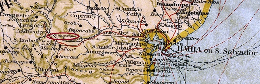 A forgotten village in the middle of the Chapada Diamantina, 440 kilometres west of the then provincial capital Salvador da Bahia. It was an arraial of the Vila de Sta. Izabel do Paraguaçu, which became a freguesia of the then newly founded Vila de Andarahy in May 1884. In the 20th century, it was renamed Igatu, presumably to avoid confusion with the larger Vila de Chique-Chique on the Rio S. Francisco.