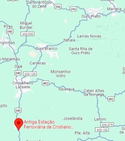 Der Bahnhof Christiano Ottoni wurde im Dezember 1883 von der Eisenbahngesellschaft E.F. D. Pedro II (Hauptlinie) eröffnet und lag am Westufer des Paraopeba im Gebiet von Vila de Queluz, 70 km südwestlich der Provinzhauptstadt Ouro Preto. Der Name erinnert an Christiano Benedito Ottoni (1811-1896), der als Militäringenieur die E.F. D. Pedro II. leitete. Er war auch Mathematikprofessor und Senator im Kaiserreich und in der frühen Republik. Die heutige Christiano-Ottoni-Stiftung unterstützt die Ingenieurschule der Universität von Minas Gerais in Belo Horizonte.