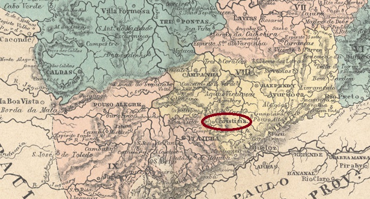 This village was the Curato do Espirito Santo de Cumquibus (sic) from 1824 and belonged to the Freguesia de Carmo do Rio Verde, which in turn belonged to the Vila de Baependy, and was located on the east bank of the Lambari, 370 kilometres southwest of the provincial capital Ouro Preto. In April 1841, it became a freguesia, which was incorporated into the Vila de Boa Vista de Itajubá in September 1848. In June 1850 it was elevated to Villa Christina, in honour of Empress Teresa Cristina, and since July 1872 Cristina (as it is spelled today) has been a town.