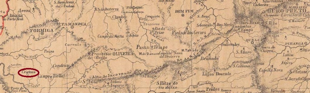 The Freguesia de N. Sra. da Ajuda de Crystáes was founded in January 1880 and belonged to the Vila de Itapecirica on the east bank of the Rio Grande, 300 kilometres west of the provincial capital Ouro Preto. In October of the following year, it was transferred to the Vila de Campo Belo and since December 1948 it has been the Município de Cristais, as it is written today.