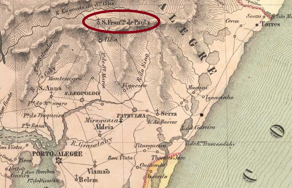 São Francisco de Paula de Cima da Serra (on the Mountains) was a district in the municipality of Taquara do Mundo Novo (now Taquara), about 120 km northeast of the provincial capital Porto Alegre. The political emancipation as an independent municipality came in December 1902, and since about 1920 the city has been called only S. Francisco de Paula, although in southern Brazil the pet name São Chico is often used.