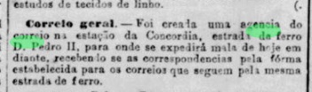 Wie die Presse in Rio berichtete, gab es ab April 1879 ein Postamt am Bahnhof: