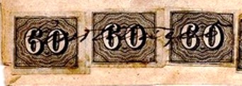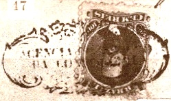 A mute cancellation was also used during this period, which was given the no. 254 by P. Ayres (op. cit.) and the no. 1356 by James Dingler and Klerman Lopes (Mute Cancellations of the Brazil Empire / Carimbos Mudos do Brasil Império, Brazil Philatelic Association, Rio de Janeiro, 2000):