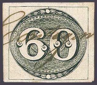 And thus we have the problem that a handwritten (postal?) cancellation on ox-eye issues from 1843 was known and occasionally confirmed as genuine, as the following pictures show: