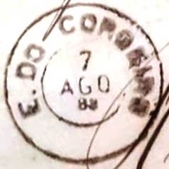 Ab dem folgenden Stempel CRJ-0395c (Samml. Klerman W. Lopes) wurde der Bahnhof CORDEIRO geschrieben: