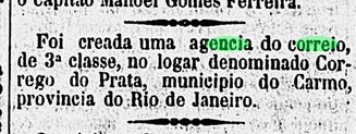 R. Koester schreibt in Carimbologia XIV, dass es dort seit August 1885 ein Postamt gab. Dies wird von der regionalen Presse bestätigt: